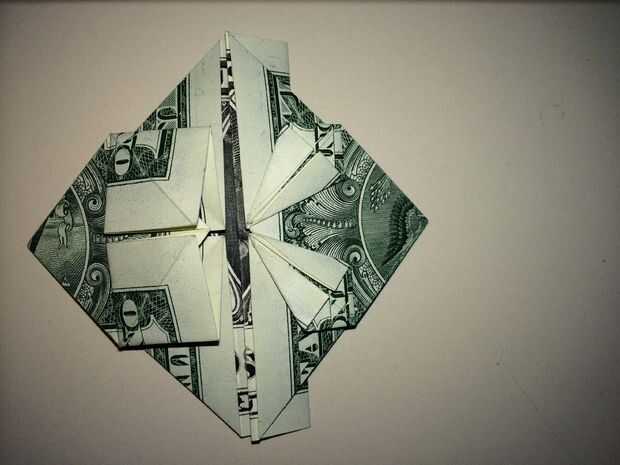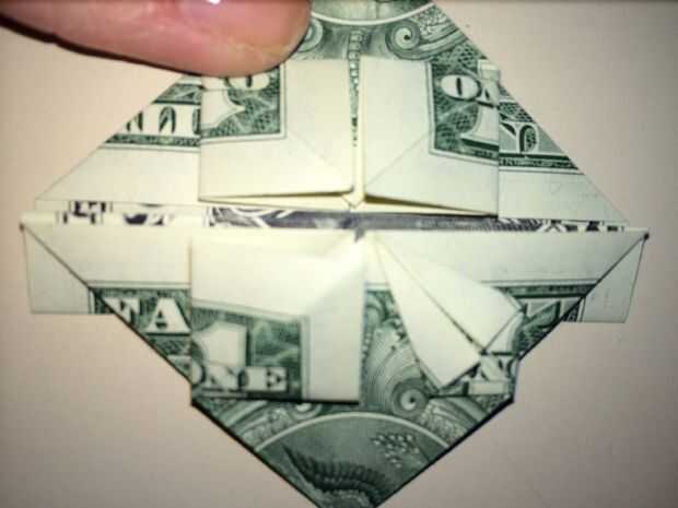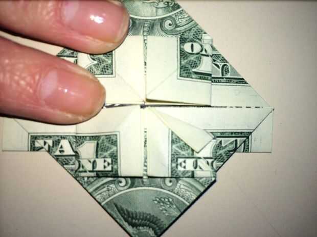 Dólar Origami corazón con cuarto (6 / 11 paso)