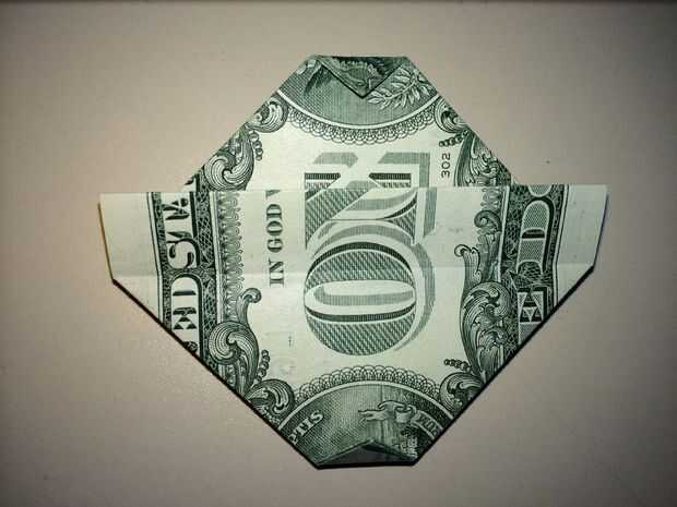Dólar Origami corazón con cuarto (8 / 11 paso)