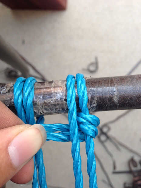 Lazo sobre la cadena más alejado de usted, bajo y sobre la cadena más cercana a usted.