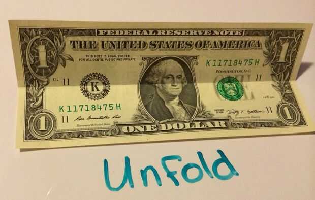 Dollar Bill Origami 5 o 6 punto Money Star (2 / 18 paso)