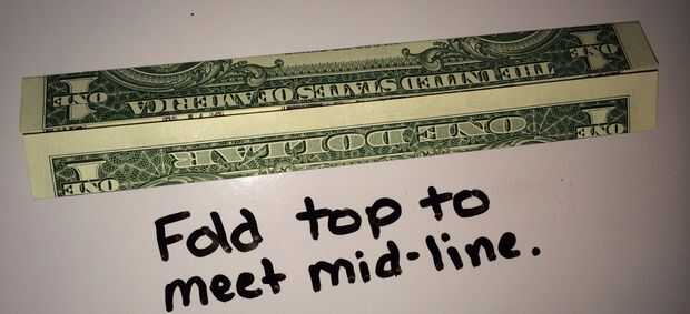 1. Permite hacer un anillo de dólar:)Paso 1: Conseguir un billete de un dólar y recostarlaPaso 2: El proyecto de ley del doblez en 1/2Paso 3: Repita el último paso-(doblez en 1/2 otra vez)(Nota: también se puede doblar otra vez para que sea más)Paso