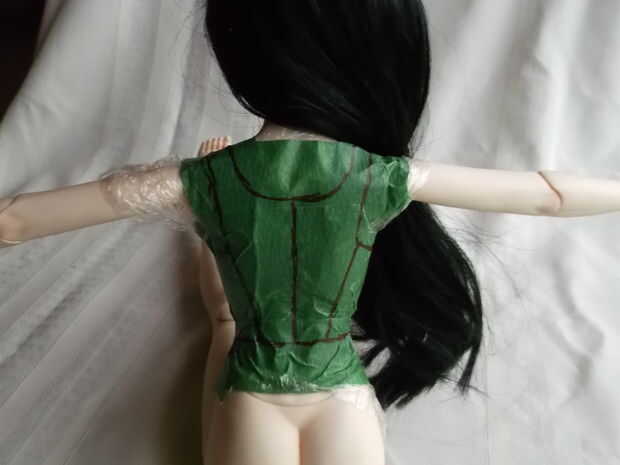 3. dibujar los bordes de las líneas de costura y blusa que desea su blusa en el chaleco de la cinta. Puede que desee hacer una investigación para averiguar donde se encuentran las costuras en el estilo de vestido que usted quiere hacer. Tenga muy cuidado de no extraer accidentalmente en su muñeca con un marcador lavable no como un rotulador. En serio. No salen.