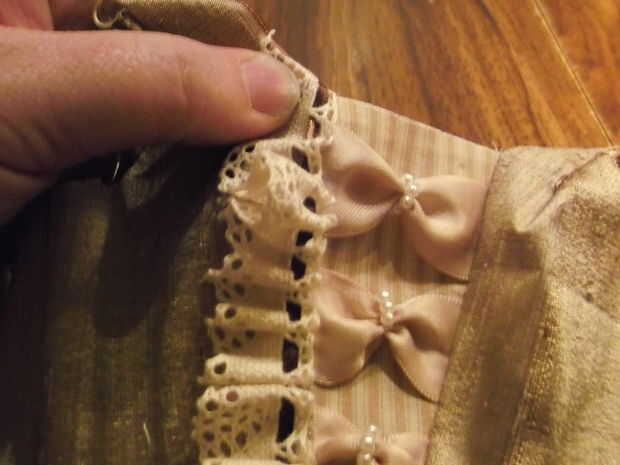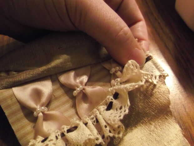 7. agregué también algunos encaje con cinta marrón delgada colocada a lo largo de los bordes del panel frontal. Esto por supuesto es opcional y se puede decorar como quieras.