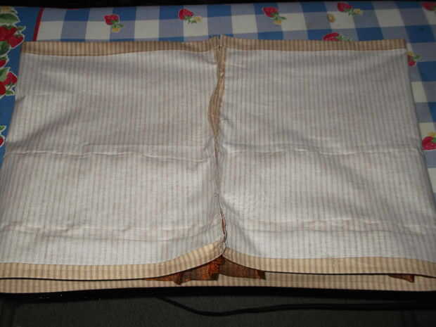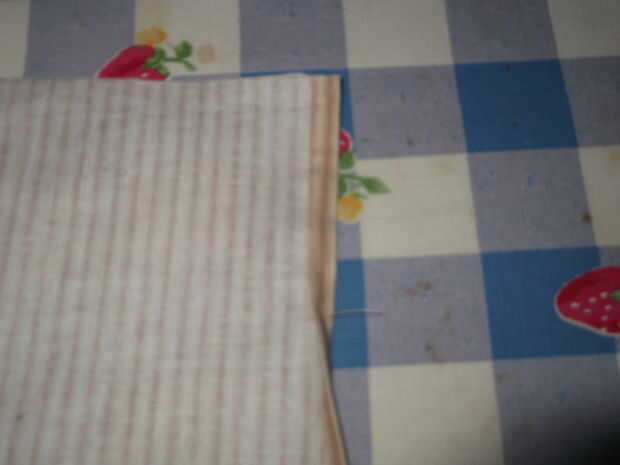 4. en el borde superior de la enagua, pliegan y dobladillo 1/4 de la manera abajo sobre lo que será la costura trasera. Esto es para que nuestra apertura donde va la cinta/pretina tendrá un borde acabado agradable. Hacerlo en ambos lados de la tela.