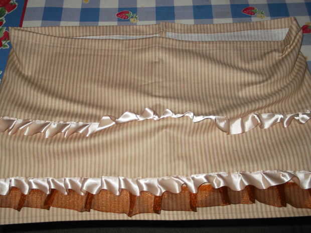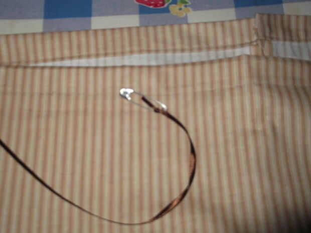5. doble la parte superior de la tela y coser un canal para la cinta, dejando abierto en los bordes que nos acaba de terminar en el paso anterior.