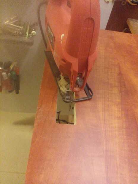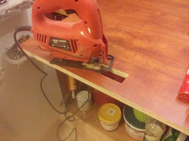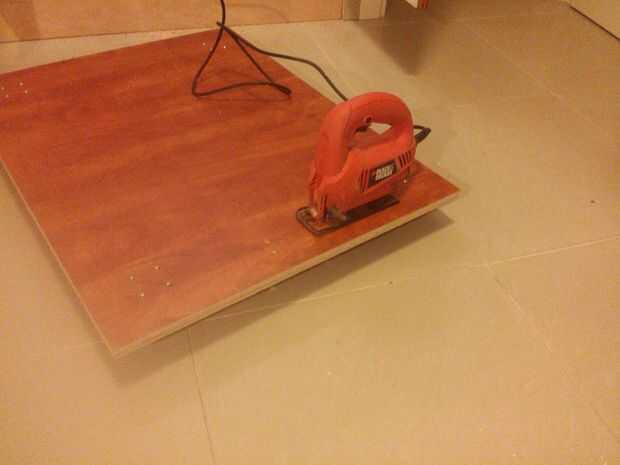 Cortar con una herramienta de jigsaw parte de Dollie, así que usted puede levantar siempre necesita