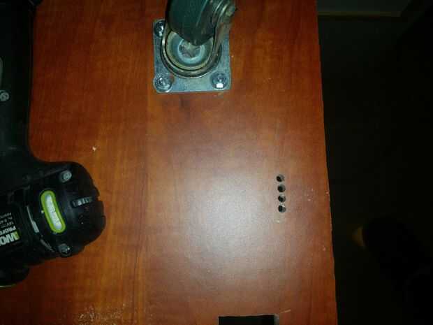 Mide el tamaño de las correas, 4 agujeros perforados, inserta la hoja de la sierra caladora y comenzó el corte
