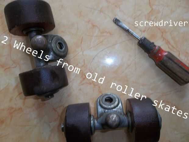 -2 ruedas de patines viejo (si no tienes esto, puede utilizar ruedas de juguetes)