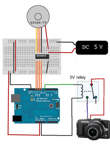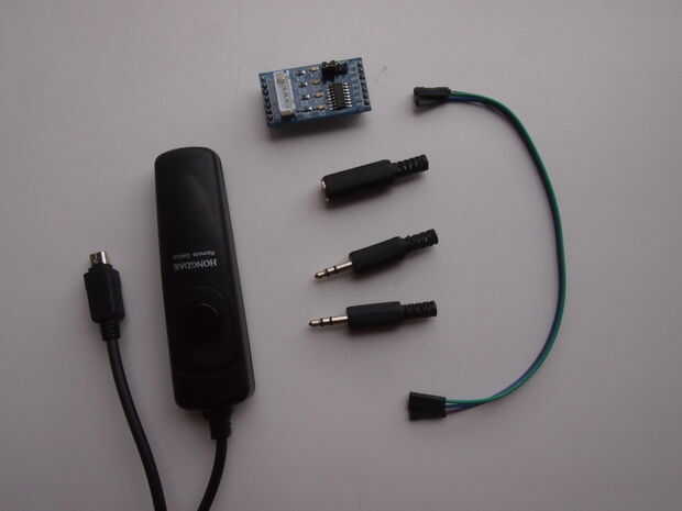 El relé que soldar cables para ser conectado a Arduino. Todo lo que conecte entre sí: arduino -> relé -> gato -> conector jack para Olympus -> y mi cámara.