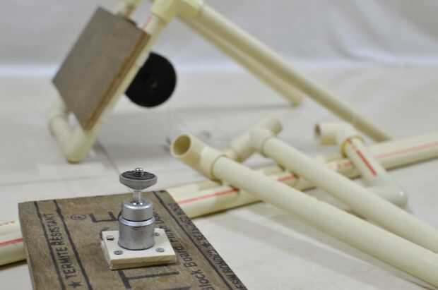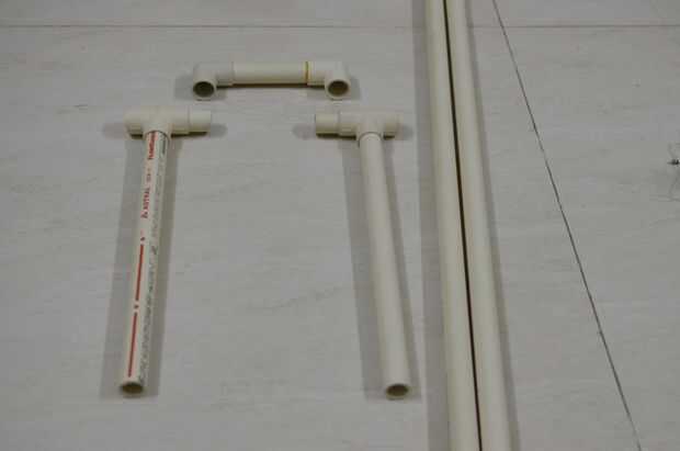 Conecte las tuberías utilizando el codo y conectores de T como se muestra en la imagen. Los conectores T actúan como conectores para las piernas también. Asegúrese que las conexiones entre los tubos de PVC estén apretadas como necesitan sostener todo el peso de la cámara. En el caso de las articulaciones están sueltas y no apretado entonces colocar una cinta de papel simple en los extremos de los tubos e insertarlos en las articulaciones hacen el truco.