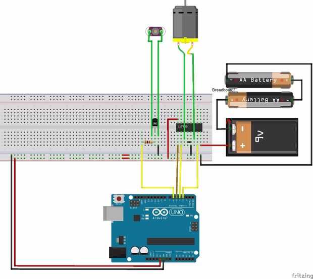La base está conectada a la Arduino a través de un resistor. Se trata de una medida de seguridad. Aquí le damos el valor de la resistencia de 1K.