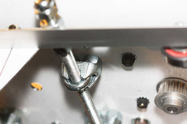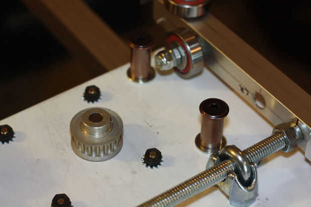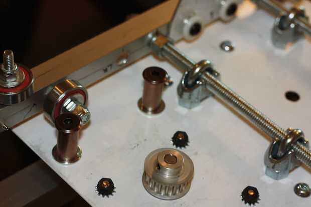 Armar el marco. Esto es donde brilla la varilla roscada. Lugar algunas tuercas en las barras entonces colocar las escuadras y ajustan las tuercas de manera que el cojinete quedar planas sobre los rieles y el marco es cuadrado. Es una buena idea utilizar tuercas aquí porque usted no quiere que mueva una vez lo tienes configurado.
