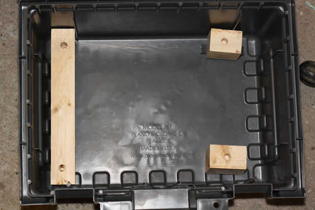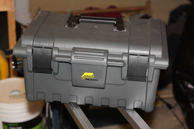 Aquí suerte hacia fuera grande, me encontré con una caja de herramientas de 10 dólares en WalMart que la cesta de encaje perfectamente. Se realiza Plano y modelo 761 http://www.planomolding.com que simplemente corté madera para levantar la "canoa" con el fondo perforado unos agujeros para los pernos de cojinete para encajar en y todo hecho. Conozco el caso protege bien porque salió una vez de la manija y el caso fue que se caiga al suelo, el carro fue 100% fino. P.d.: he descubierto que el mango puede venir apagado así que ten cuidado.