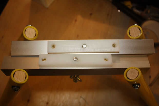 Por último he añadido algo de madera en los extremos de las patas para parar la fibra de vidrio de que se aplaste cuando apriete el ajuste de los pernos. (por esta razón se recomienda que utilizar aluminio.) aflojando los perno puede ajustar las patas para nivelar el sistema, estoy impresionado con lo bien estas funcionan.