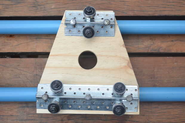 aquí es un carro lanzaron juntos. Tomó unos planes diferentes de algunos sitios web y hacer mi propia. Corre a lo largo de la tubería de 1 1/4. Todavía en el proceso de encontrar una manera para que sea posible añadir más secciones sin ningún tipo de