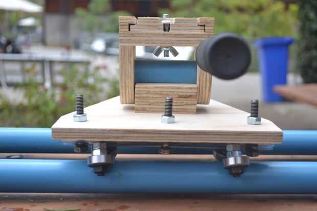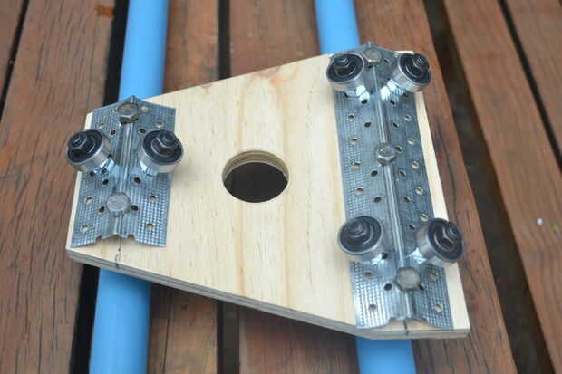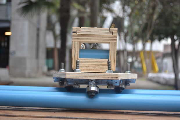 Junto de los rieles de pvc con los rodamientos permiten las tomas lineales.