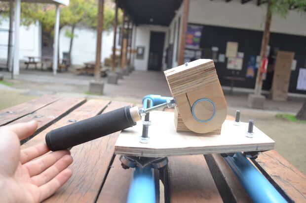 Los trozos circulares bajo la cabeza del trípode permiten el paneo horizontal.
