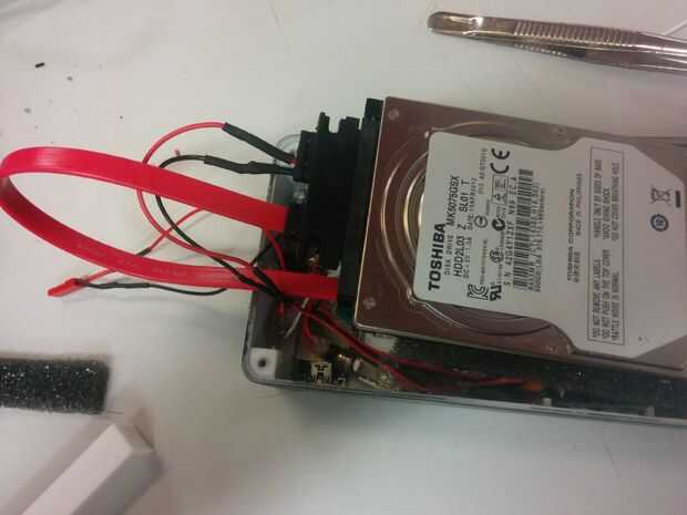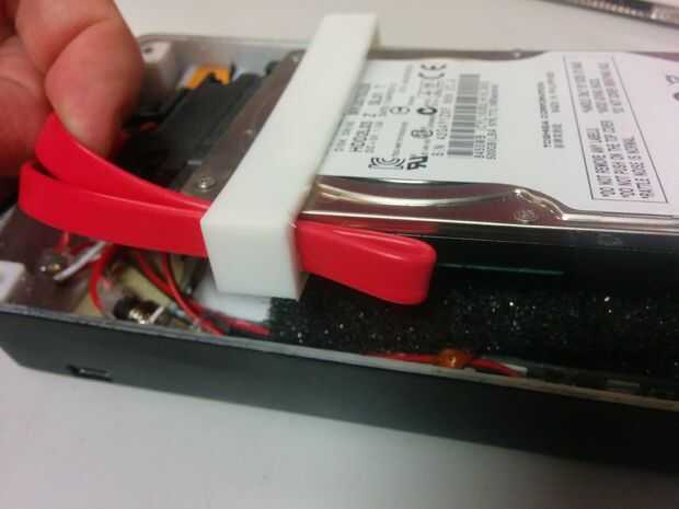 Poner otro trozo de espuma en la parte superior del adaptador y conectar el disco duro.