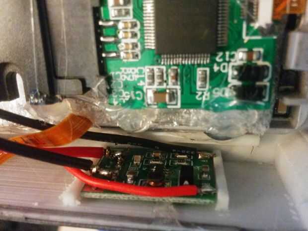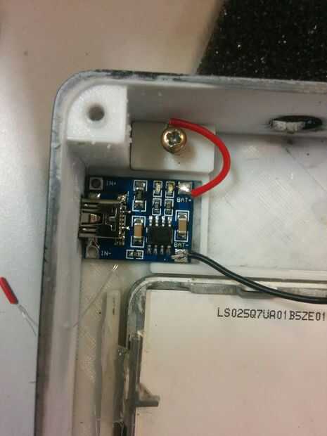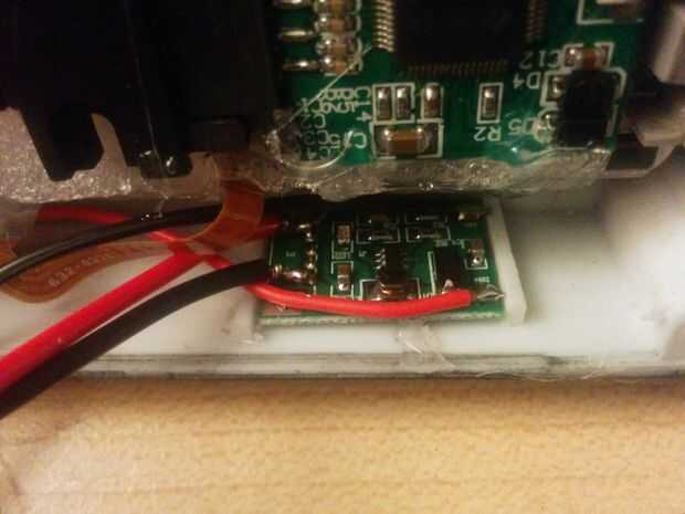Soldadura en algunos cables con el cargador y el pegamento en las ranuras.