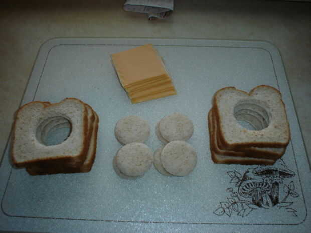 Los centros del lugar al lado, apilarlos; y apilar las rebanadas de pan cortado.