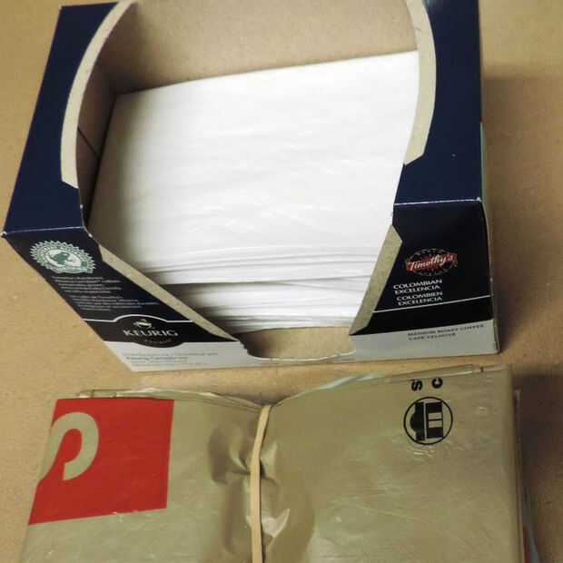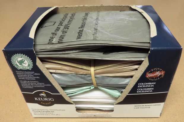 Aquí estoy utilizando una caja de la taza de K que se adapta perfectamente a las bolsas.