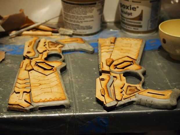 Después de la limpieza de las piezas cortadas y encolado de juntas, hizo el bisel y algunos otros detalles un trabajo más pequeño con Apoxie Sculpt, luego pintado con algunos la cartilla del llenador para igualar la textura. Lija con 600, 1000, 2000 luego pulir.