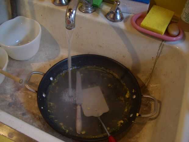 Si Remoje el pan inmediatamente, será mucho más fácil de limpiar el huevo.