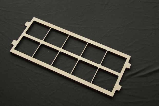 Después de tirar el carrito de la cortadora del laser, inspeccione las rebabas o otras imperfecciones. Utilice un cuchillo o un papel de lija para corregirlos. Puede utilizarse un rotulador negro para hacer los colores coinciden con cualquier sección que sea necesario lijar o cortar con el cuchillo.