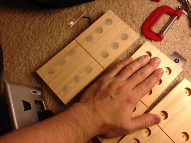 hice un estándar 6 por 6 set de dominó (28 piezas).  Así que tomó un tiempo para completarlos todos.  En última instancia, manchados y los selló.  La última foto es de referencia.