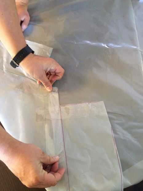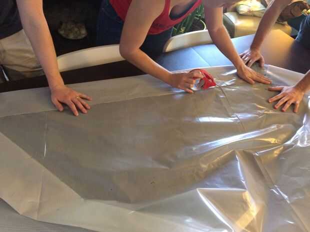 Finalmente, tomar a la tela del espacio y plegar hacia la parte inferior de la cúpula. Cinta hacia abajo y recortar el exceso.