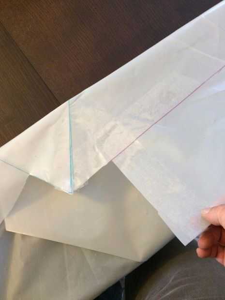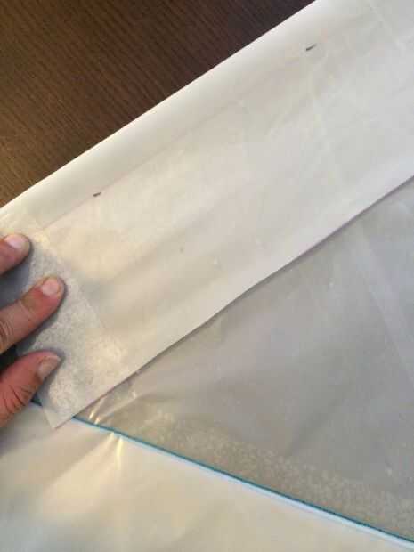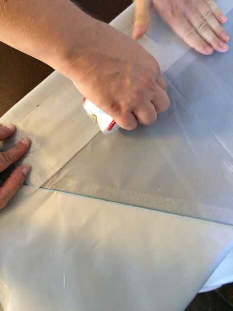 - Reforzar las esquinas del borde. Poner cerca de 8 pulgadas de cinta por el borde corto del rectángulo y cruzarlo con unas pocas pulgadas de la esquina en el borde del triángulo. Repita en el otro lado de la hoja. Esto evitará que la cubierta de lagrimeo en los lugares donde se tensiona.