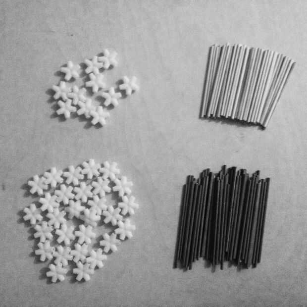 He encontrado esta orden de operaciones observando mi lucha de amigos con las piezas sin las instrucciones apropiadas. Gracias por las ayuda amigos:) En primer lugar, montar los pentágonos para "penta-pods" uniendo las varillas b. las cinco articulaciones a un lado. Ahora estás listo para construir! Luego, rellene los otros palillos A construir alrededor de estas vainas a medida que avanza. Las células hexagonales aparecerán dentro de estas vainas. Son buenos para referirse a los dibujos y el video a continuación debe aclarar cualquier otra duda