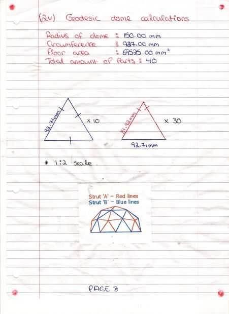 que necesitaba para elaborar los cálculos de cada triángulo consiste en la cúpula, del radio. Hay varios tipos de domos. De 1V a 6V cuanto mayor sea el número los más triángulos que son por lo tanto que la cúpula será más redonda en forma. Elegir 2V diez triángulos equiláteros 92,71 mm y 30 mm 81,92 isósceles triángulos. Estos representan una cúpula de radio 150mm 2V. Usé la calculadora domo desierto para hacer el trabajo para mí http://www.desertdomes.com/domecalc.html.
