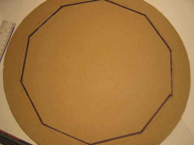 Debe dibujar un círculo interior de 30cm para saber donde colocar triángulos de base. Utilizando una brújula había aplicado 92,71 mm en el círculo interior y marcó un punto de inicio. Desde ese momento he marcado otros 92,71 mm alrededor de este círculo que me dio la base de los domos.