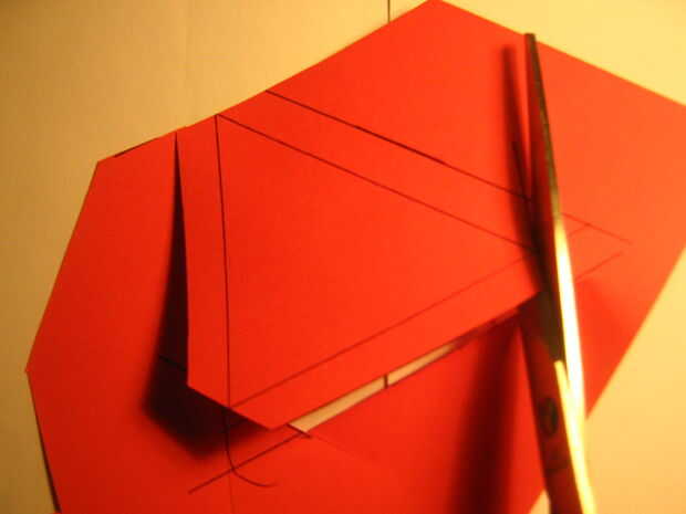 Paso 2 - cortar los triángulos utilizando unas tijeras asegurándose de ángulo de las aletas de la cola por lo que no convergen cuando les.