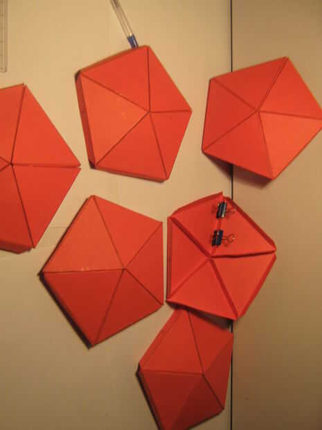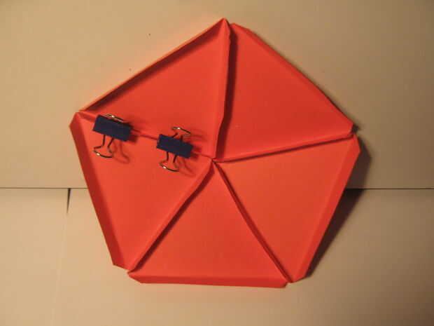 Paso 4 - cuando todos pegamento pestañas se pegan correctamente debería verse como un hexágono pac-man. La brecha permite al Pentágono a pop-up y conseguir la forma de cúpula.