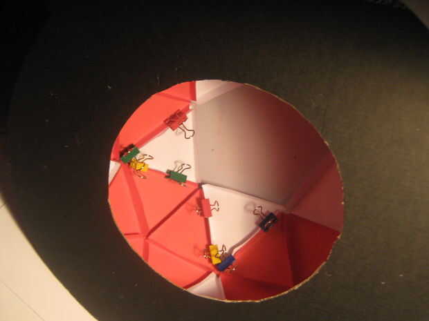 Paso 8 - el Pentágono final ser instalado (la tapa) tiene que cortar un círculo de la parte inferior de la cúpula que permite el acceso al interior de la cúpula así que me permita pegar la última pieza en.