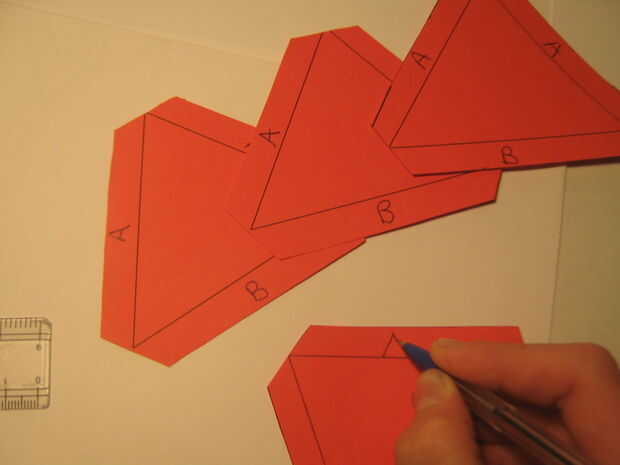 Paso 3 - marcar las pestañas dobladas con (A) y (B) así que usted puede pegar el A de A y el B a B El triángulo blanco debe ser de todos los B En los triángulos de rojo el lado más grande 92,71 mm debe marcarse también con B Los otros lados deberán estar marcados con s Esto evitará confusiones, ojala: P. Ver la imagen de la página de cálculo.