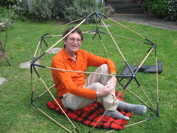 Aquí es una versión de 1V simple que utiliza bambú se deslizó en recortes de manguera riego jardín negro. Estas son (solos) canal atornillado en el tubo se superpone - la estructura es rígida y rápidamente desmanteladas para el almacenamiento. 24 todos puntales son de idéntica longitud y espesor de.
