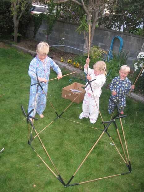 Sí-los niños les encanta edificio-su hermano ha unido ahora a la diversión!   Pensé que este concepto de domo de bambú adapte mejor a ~ 8-10 años, pero estos 3 hermanos (el mayor sólo ~ 6) ponen juntos en un FLASH!