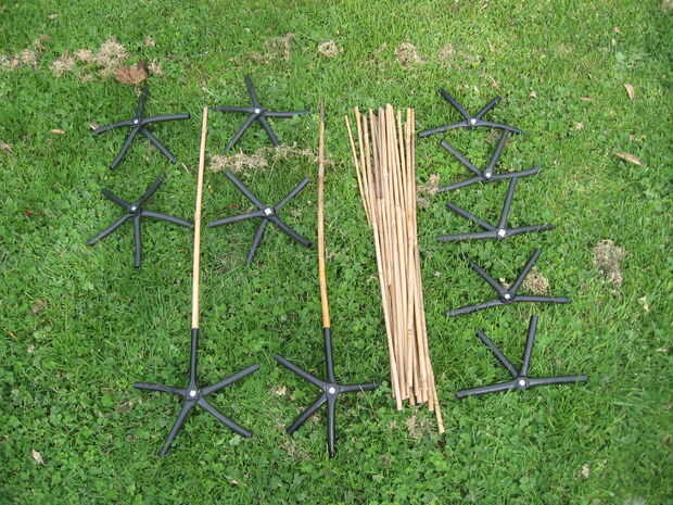 este intructable muestra cómo hacer un abrigo de cúpula geodésica simple y de bajo costo con materiales reciclados, bambú.Paso 1: Bambú y estructura Lo que necesita es 26 pies 4 palillos de bambú y unos 120 pies de cuerda de nylon.En la foto de abajo