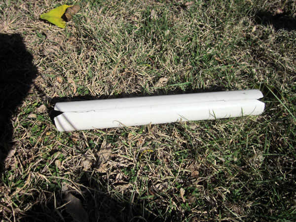 Opcional: para hacer las abrazaderas más fuerte para las pestañas, corte 12" longitudes de poca potencia 1-1/4" tubo de PVC. Corte una ranura longitudinal en cada tubo. Corte una muesca en cada extremo de la ranura para permitir que la pinza resbale en las lengüetas.