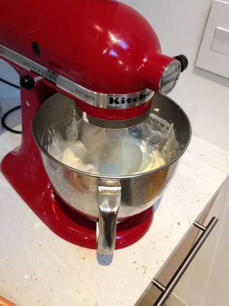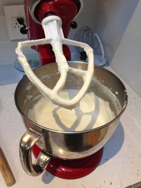 Batir queso crema, crema agria y azúcar juntos a velocidad media hasta suave y esponjosa.