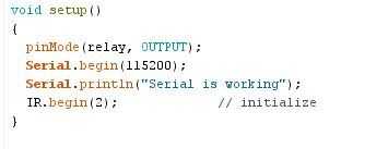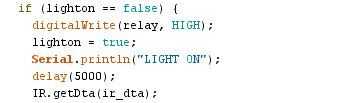 También tuve un problema con la librería después de instalarlo. En el bucle principal, una vez presioné el botón una vez que seguiría encender la luz de encendido y apagado, encendido y apagado. No tenía idea por qué porque el si con control de función de una señal antes de que fue ejecutado y luego hizo una sola vez. Finalmente descubrí que necesitaba llamado ras el viejo valor recibido. Una vez agregó que funcionó a la perfección al principio! También he añadido un retardo de 5 segundos después de pulsar el botón porque mantiene pulsar un botón adicional de efectuar al estado de la luz. Además, probablemente no es bueno para los focos de luz que se enciende y apaga muy rápidamente.