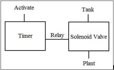 La señal de activación viene desde el circuito de decodificador DTMF o un interruptor de botón. Esto activa un temporizador que conducirá a un relé de control de una electroválvula. La válvula se mantendrá abierta durante la duración del impulso de los temporizadores. Con el agua abierta de la válvula puede ser ya sea vaciado de una gravedad alimenta el tanque o conectado a la línea de agua de la casa. El temporizador se utiliza también para asegurarse de que las plantas no Haz regadas demasiado. Esto se hace manteniendo abierta la válvula para una cantidad conocida de tiempo que controla el flujo de agua a la planta.