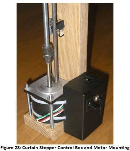 Se mantiene la velocidad del motor paso a paso lento para demostrar el control de precisión para movimiento lineal y rotacional. Como resultado la tuerca de acoplamiento tarda aproximadamente media hora para recorrer la longitud de la varilla roscada. Para la demostración el conductor cortina fue accionado mediante los interruptores locales. Modificando mi código usted puede hacer fácilmente que la barra gire más rápido, y tiene la tuerca de acoplamiento recorrer la longitud de la barra en 10 o más segundos.