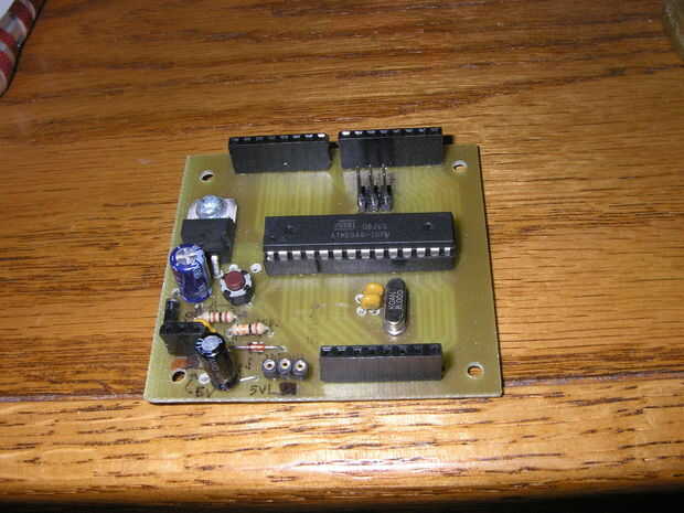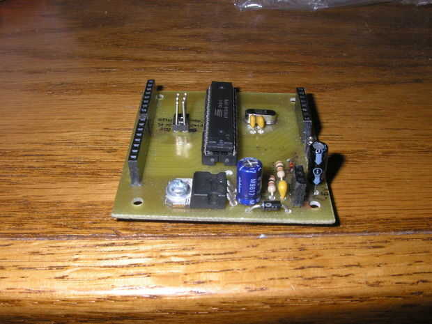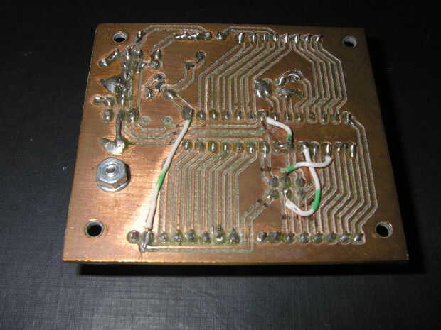 Usé solo revestido para esta tabla en lugar de doble cara así que tuve que puente algunos alambres de cobre echó a un lado. Sugiero siempre que suelda en un zócalo del IC en vez de soldar el IC directamente. Esto protege el IC contra el daño de recalentamiento y permite cambiar el IC para otro si decides actualizarlo más adelante.
