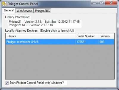 1. Le enchufe tablero de phidgets IO en un PC e instale a los controladores de phidgets