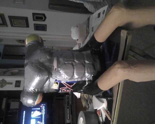Esta serie muestra el cuerpo construir proceso. Piernas en primer lugar. Luego los hombros y picotazos y abs. Entonces maché, masilla de madera y pintura.