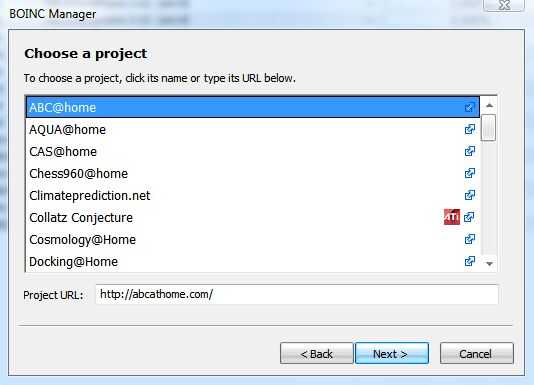 Ahora que tienes la aplicación instalada, usted necesitará elegir y adjuntar a los proyectos. Una lista completa de proyectos BOINC puede encontrarse